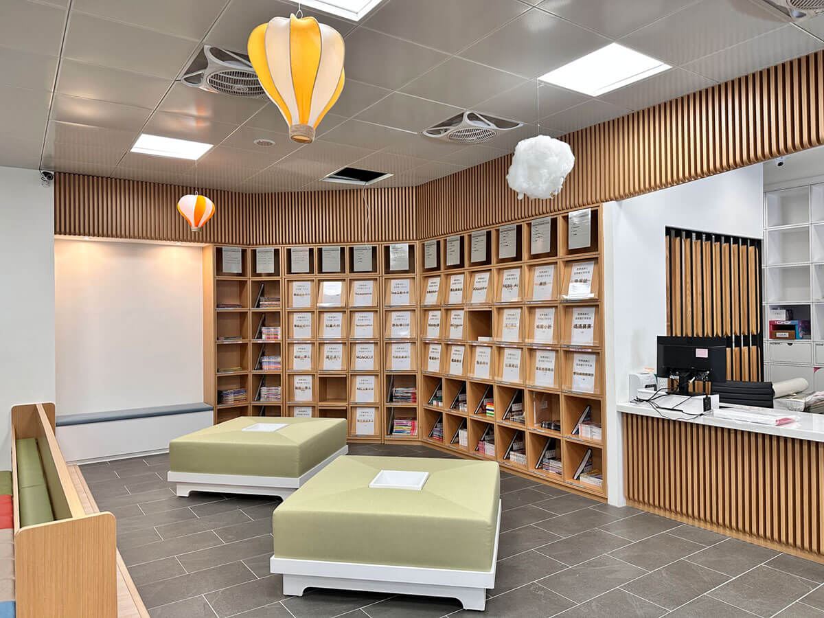 林口區李科永紀念圖書館總面積約251坪,地上2層樓的綠建築設計,運用環保材料塑造簡約自然的室內空間氛圍,1樓為動態共玩學習空間,設有「樂學基地」、「期刊伴讀區」、「陽光曬讀庭」等提供說故事、遊戲等動態活動的場域,隨著書香坡道緩升連接到2樓,2樓為靜態閱讀的空間,藉由高低的書格打造出活潑的童書區、日光閱讀區及知識小學堂,提供讀者閱讀及講座活動空間。
